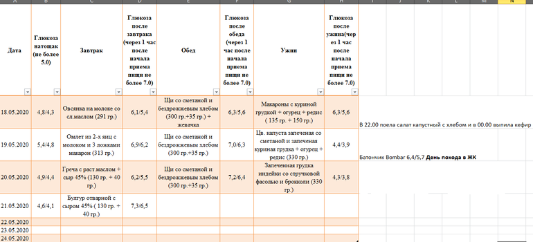 В общем, веду пищевой дневник и измеряю сахар глюкометром Акку-чек Перформа.