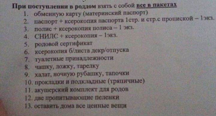 У меня вопрос к вам! Прикрепляю фото списка в роддом, я так понимаю это в родзал. 1.Объясните мне пожалуйста что такое подкладные? 🙈 🙈 🙈 Это одноразовые трусы или обычные пеленки чтоб стелить под себя?