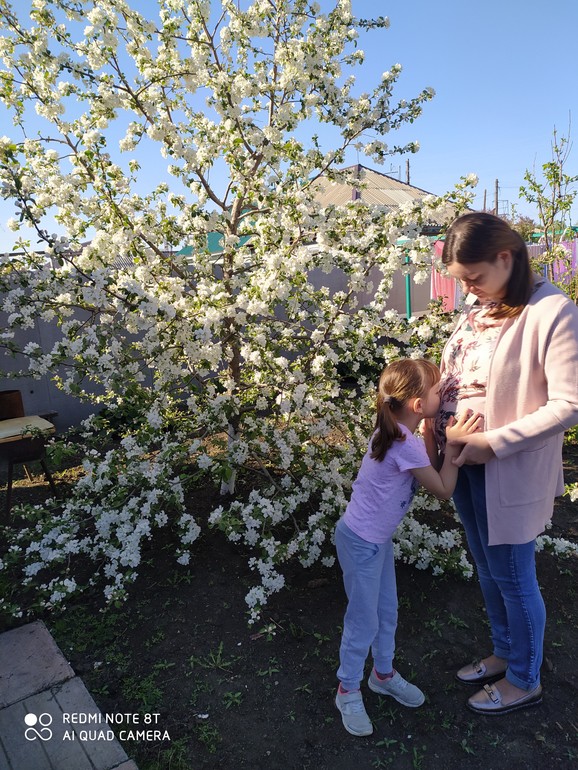 Мама блин фотограф)))У родителей яблонька зацвела, здесь еще недель 28-29)Дочка прям ждет братика, нацеловывает животик))