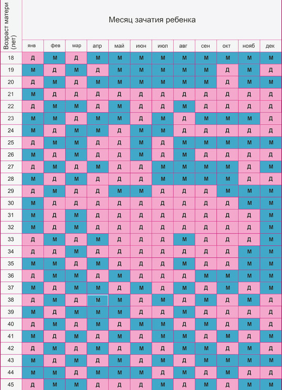 И тут я наткнулась на таблицу, определяющую пол будущего ребёнка по возрасту матери.