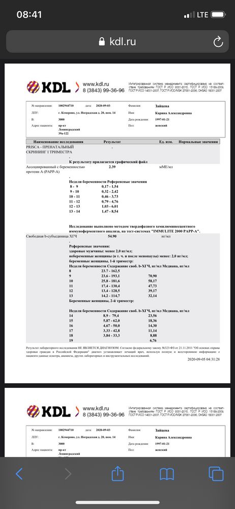 Карина, УЗИ отличное. Насчёт крови - откройте почту. Там должен прилагаться графический файл. Через смску он не открывается, только сами анализы. Предполагаю девочку:))