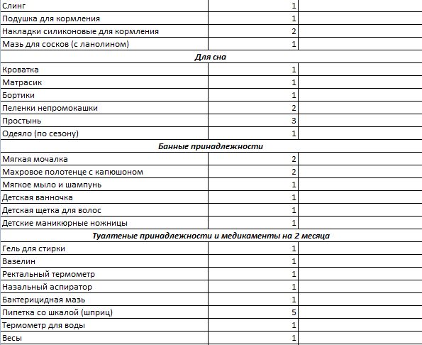 Я не увидела пеленок в списке. Ситцевые, трикотажные и фланелевые по нескольку штучек сама собираюсь покупать.