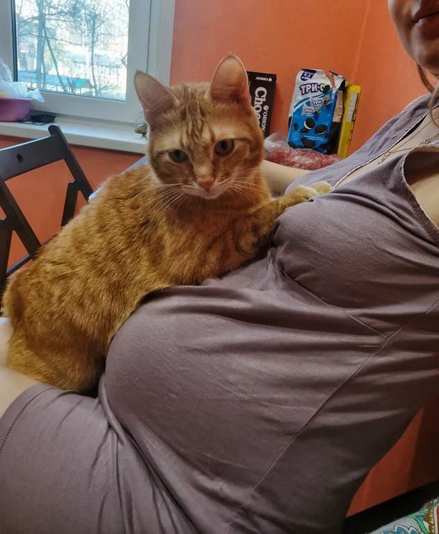 Вес 1800. Голова ооочень низко, где-то в районе правой ноги😁 как он туда добрался вообще))) а бьёт под ребра, короче, чувствует себя вольготно - растягивается во всю))