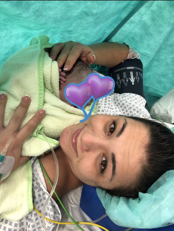 Малыша показали мне сразу, потом унесли мыть, взвешивать, а после он лежал и подхныкивал у меня на груди... синеватый такой комочек счастья🤩😍