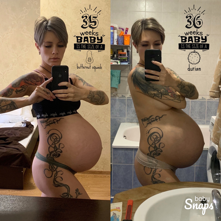 А это вчера вечером фоткала (слева 36 нед., справа вчера)