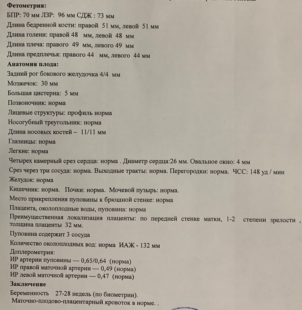 В среду, 24 марта, было 27 недель. Ходила на приём к гинекологу, сделали УЗИ с доплером.