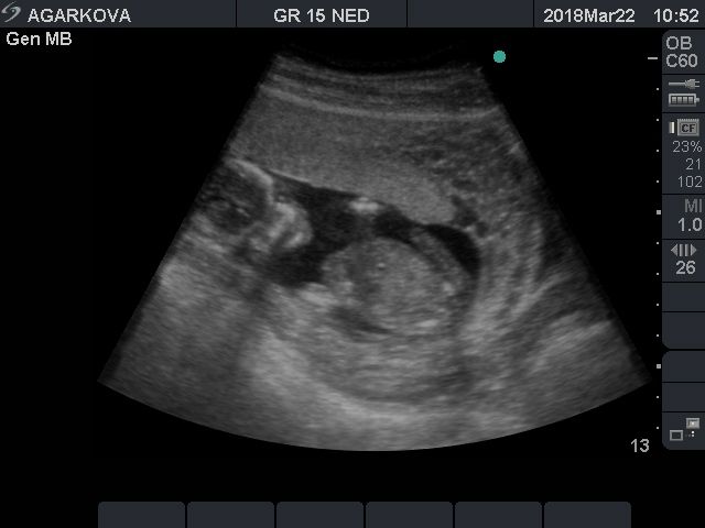 Эх. Рома на этом сроке уже вовсю светил достоинством, мне сказали "мальчик" буквально спустя минуту после того, как засветили малыша датчиком.