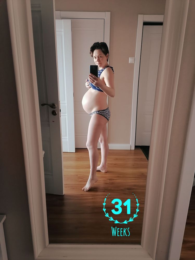 Становится все тяжелее ходить, животик тяжёлый, спина болит, очень частые треники и очень болезненные, живот хватает и спину одновременно, аж дышать тяжело. Кушать много не получится никак, сынок поджал уже все и частенько получаю по печени и по ребрам🙈😂. К вечеру пыхчу как паровоз, все давит, колет и тд. С утра чувствую себя норм.
