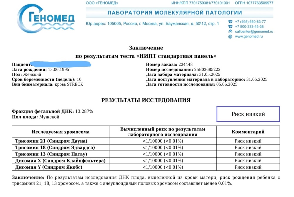Геномед. Результаты нипта.
