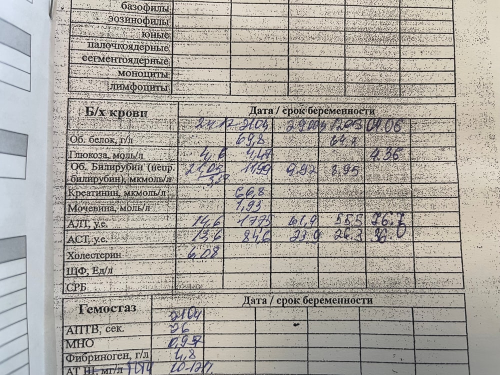 21.04 такие показатели это 30 неделя, прописали урсофальк 4 таблетки в день и пила холензим. Далее показатели хорошо снизились, плюс минус держала диету. Убрала все витамины, пила только таблы. На 35 недели (почему то не заполнил врач) показатели выросли до ~60 пью также урсофальк , добавила гептрал и артешок где то неделю это пью и на 37 недели (04.06) показатели опять вырастают, ничего не помогает. Чесотки и всех побочек у меня не было даже на высоком пике, чувствую себя прекрасно. Не знаю что делать, охота дождаться родов дома, а не лежать в больнице, очень надеялась что гептрал поможет, но нет. Если что узи делала, с печенью все ок, чуть чуть желочный увеличен, но мб до беременности так и было