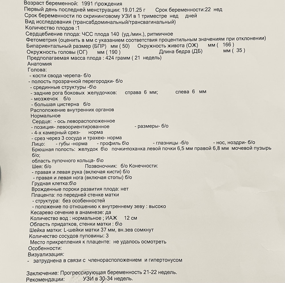 Срок беременности на момент обследования 21-22 недели.