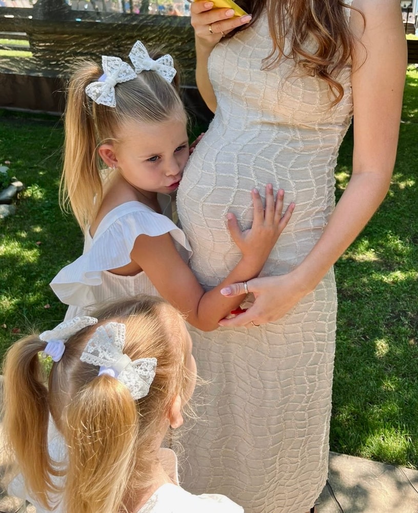 По ночам бывает дико сводит ноги (пальцы на ногах, икры). Гинеколог увеличила дозу Магне Б6. Но это я считаю мелочи жизни) Живот уже ооочень приличный… на улице пришла жара 🥵 +35 примерно, нужно выжить это время года)) У мужа отпуск, у детей отпуск от тренировок на танцах, едем на море.😉