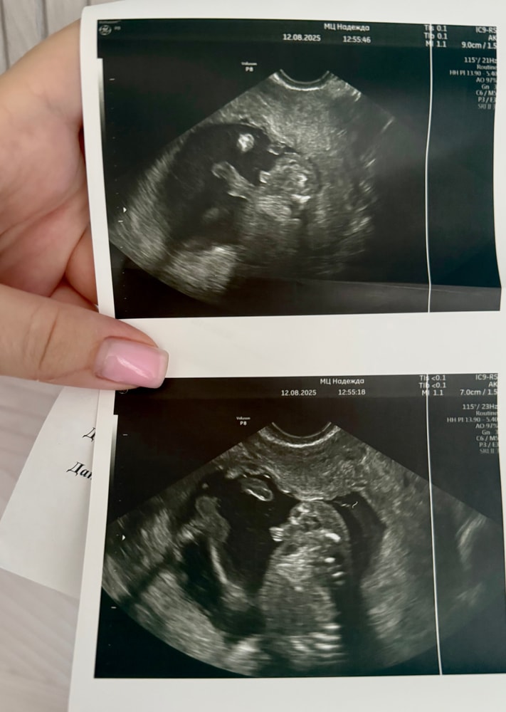 Пол малышаВсем привет🌸Вчера писала пост по поводу узнавать пол или нет.Сегодня с утра сходила на цервикометрию.Процедура длилась одну минуту,врач просто померил шейку и послушал сердцебиение.Даже не успела спросить может ли он пол посмотреть,вот так все быстро было.Пока шла домой не могла прям успокоится,позвонила в одну клинику,там сегодня все занято,а во второй сказали через 20 минут приходите.Как раз я была недалеко,прогулялась.Врач сначала удивилась мол рановато еще пол смотреть,но я все же настояла.По животу мы мало что увидели,малыш лежит ногами вниз как раз.А вагинально увидели сразу и очень хорошо,он нам все показал😂Еще так символично,клиника находится рядом с церквью,и мне называют пол и начинают в этот момент бить колокола.Лежала с глупой улыбкой😄Побежала скорее домой обрадовать мужа.Он знал,что я сегодня иду на узи и хочу спросить про пол.В итоге позвонил и спрашивает сказали или нет,я еле удержалась и говорю ничего не сказали(на цервикометрии же и вправду ничего не сказали).По дороге зашла в «Детский мир»,думала взять голубой бодик,но смотрю голубых там не было вообще,либо для девочек либо для мальчиков,но не голубые.В итоге взяла пустышку🍼Домой прихожу,протягиваю мужу.Он сидит в непонятках,зачем так рано соску купила.Потом понял наконец-то,когда сказала на цвет внимание обратить))Он просто воссиял,эффект неожиданности произошел.Сначала меня крутил и целовал в живот,а потом ходил с такой же глупой улыбкой как у меня по дому,мусорный пакет как раз собирал перед выходом и ходил с ним улыбался 😂Это надо было видеть.У НАС БУДЕТ СЫН!!!🩵🩵🩵Все как мы мечтали,именно о сыночке.Попросила врача еще сделать фото-доказательства,чтобы было на память.