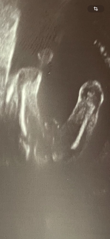 В итоге решила совместить платный контрольный УЗИ с процедурой узнавания пола. Врачу отдала конверт, попросив не говорить, но она сразу же сказала, что тут прям очевиден пол. Я пошутила, что обычно так говорят, когда мальчик, она говорит, ну да, крепкая мошонка. Сфотографировала ее: