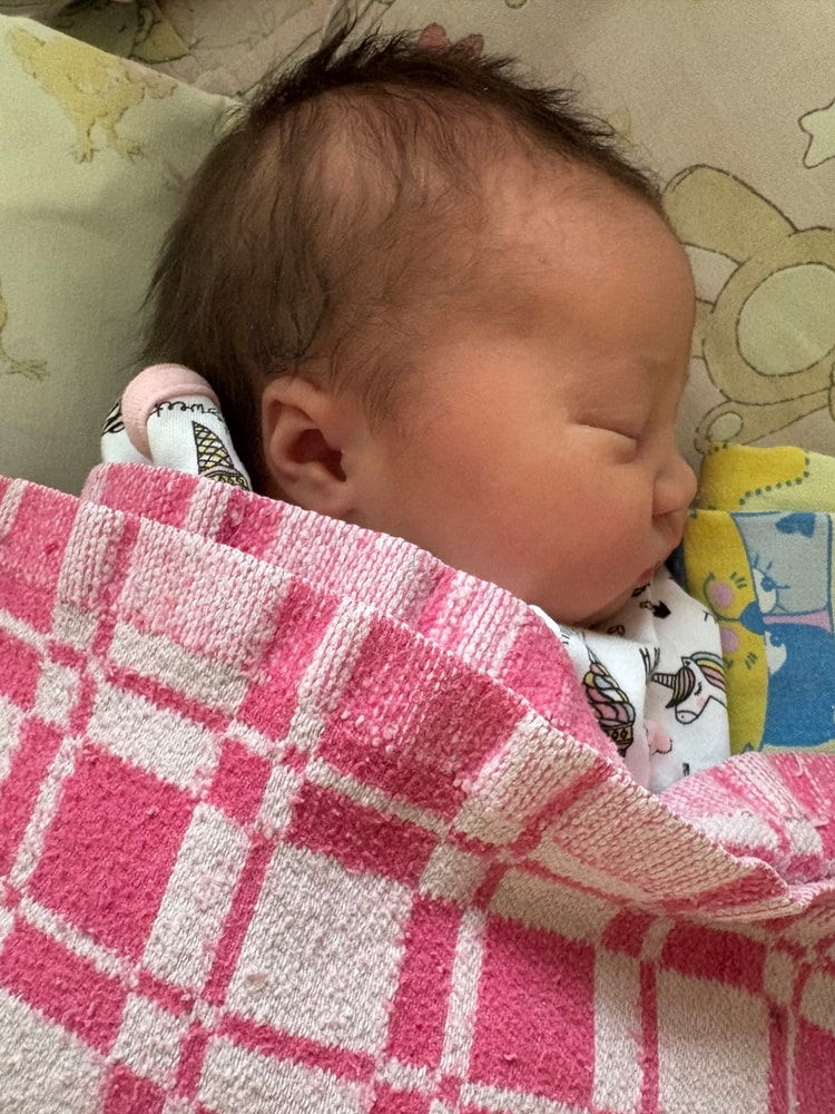 😅здоровая девочка у вас! Сладкая такая♥️ просто она у вас курносая, вот моя младшая курносая дочка при рождении