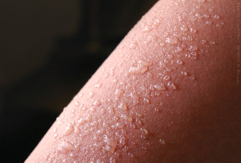 То, что на фото очень похоже на то, что сейчас на мне. Я обгорела, боль уже прошла и верхний слой кожи только начал отслаивается. Я целый день ходила городу, вспотела и придя домой заметила такую картину. Это капли пота которые не смогли пройти через сгоревший слой кожи. Не уверена, что так у всех, но это мой опыт. Можно смыть мочалкой или даже рукой.