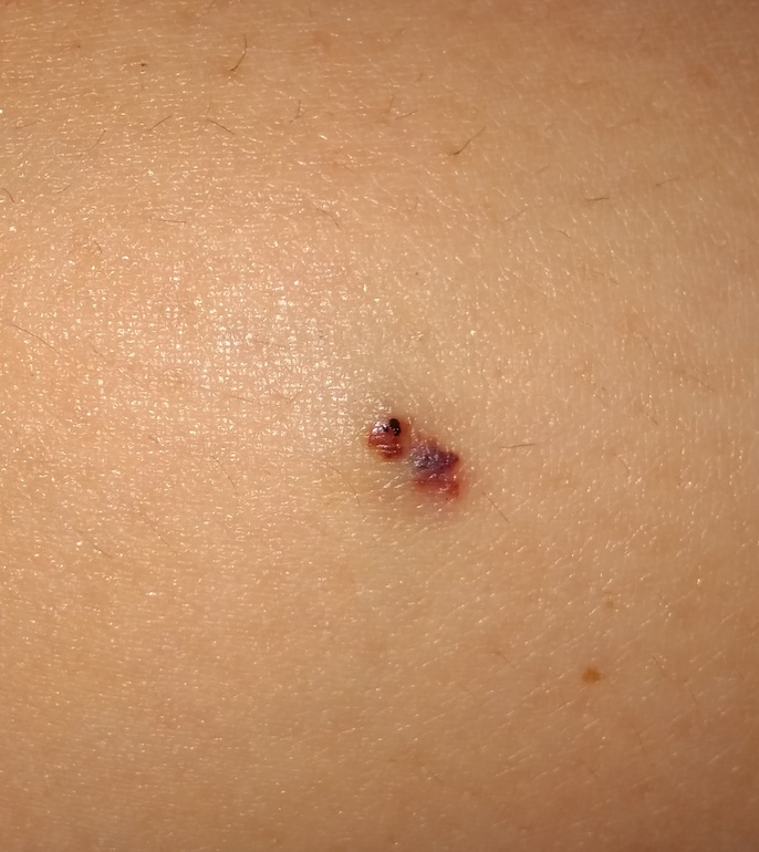 В понедельник к хирургу. Маленькая точечка на ноге была года два точно. В последний месяц раздвоилась и появилось уплотнение. Не болит. Это не родинка точно.