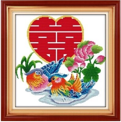 Набор для вышивки крестом уточки-мандаринки. Иероглиф двойное счастье, символ верности и успеха в делах любовных) 50*50 см, 400 руб![]()