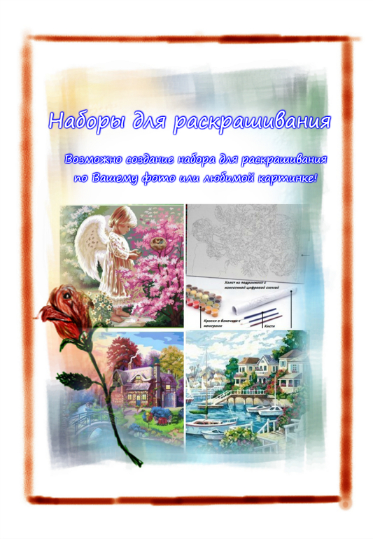 Кроме того, возможно создание набора для раскрашивания по Вашему фото или любимому изображению! Сделайте близким незабываемый творческий подарок!