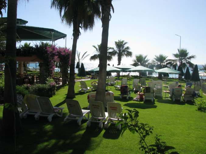 Лежаки не только возле моря и бассейнов, но и на нескольких газонах!