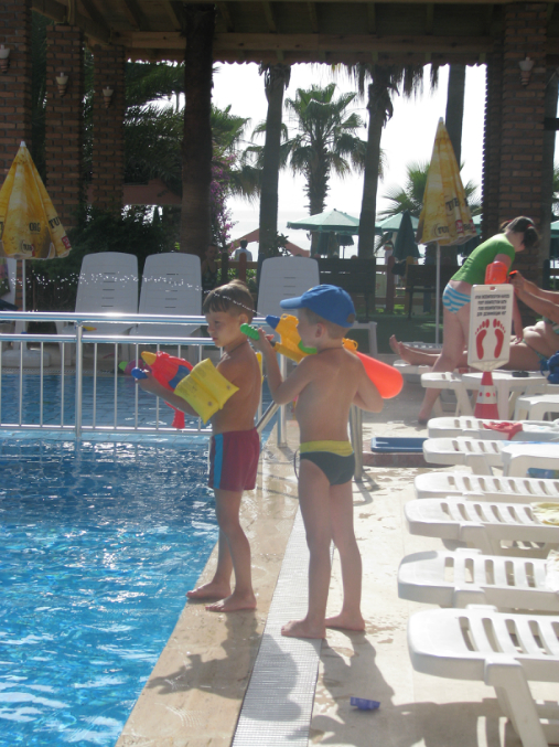 Отель ориентирован на семейный отдых. Детишек очень много! Мы приехали и на мини-диско было порядка 20-25 детей, когда уезжали - было почти 100! В самый разгар сезона до 150 детей (инфо от аниматоров).Водных горок в бассейнах нет. Есть детская площадка с горкой и качелями ( ничего особенного, но детям нравилось))), мини-клуб прямо возле бассейна. Дети всегда под присмотром :)