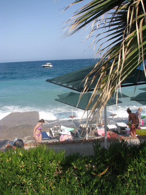 Фотки пляжа не удачные (фотографировала, когда штормило), в основном мы загорали на газоне и плавать ходили то в море,то в бассейн.