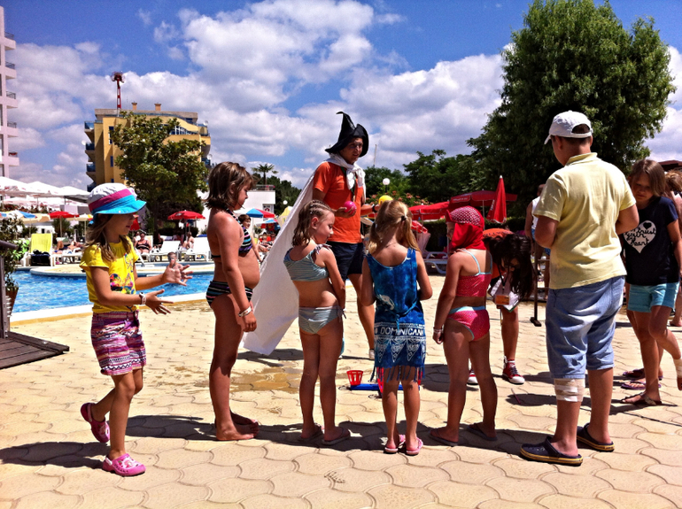 Для Болгарии отличная, как я поняла. Аниматоры очень стараются (с турцией я вообще не сравниваю), но объективно анимация не плохая. У детей были какие-то конкурсы небольшие в бассейне, в море в мячик играли, рисовали что-то, ну и мини-диско. Вообще, ничего особенного, но детьми все же занимались. Слышала жуткие отзывы об анимации в самолете (и не только об анимации) и поняла, что мы были просто в шоколаде)))