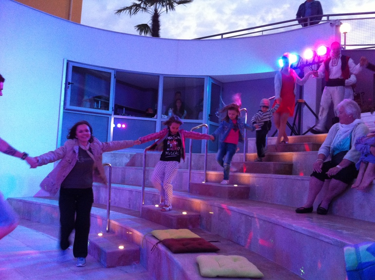 А это вечерняя анимация. Болгарский вечер. Мы его смотрели раза 4 точно, мне взрослая анимация вообще не нужна,в отличии моего ребенка, она смотрела и участвовала во всем!)))