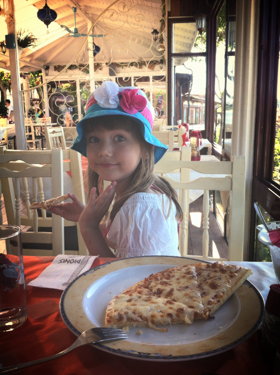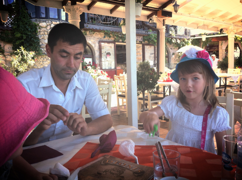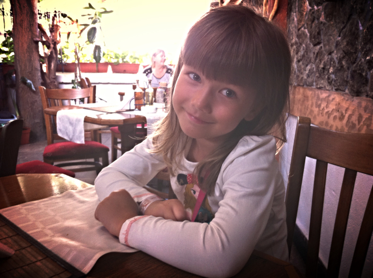 Покушали в очень красивом и уютном кафе. Виолетта уже обаяла официанта и он делал ей розочки из салфеток)))