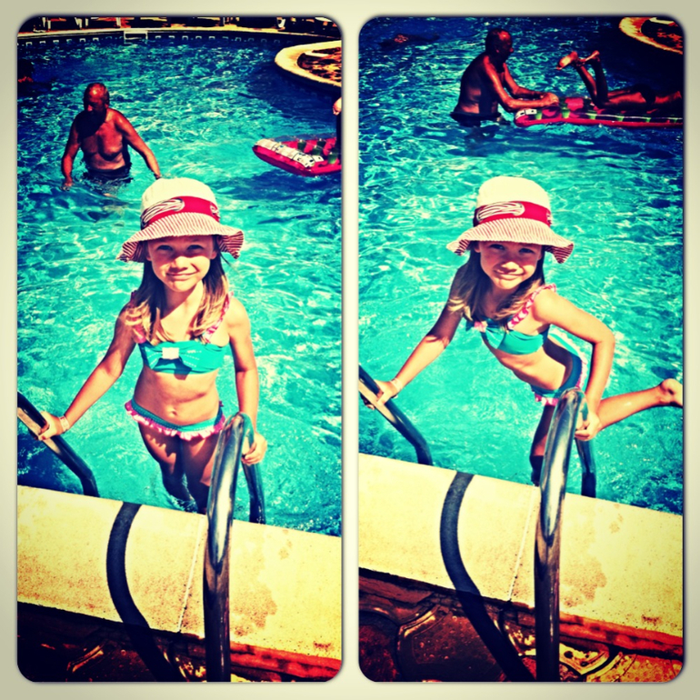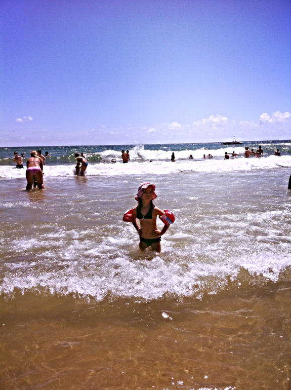 НО, только мы в первый же день пришли на море, я купаться не хотела, т.к. море было прохладное еще, а виолетте хотелось плескаться (она плавает нормально и море мелкое, так что одну ее можно было спокойно отпускать, под моим присмотром естественно).