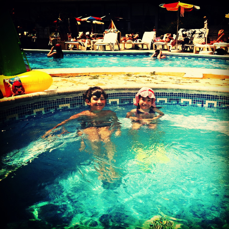 Бассейн в отеле без подогрева, но было очень тепло! Хотя в конце июня еще прохладно и первую неделю я не купалась, а ребенку моему (да и всем) без разницы, в какую воду лезть.Было и детское отделение и взрослое и джакузи.