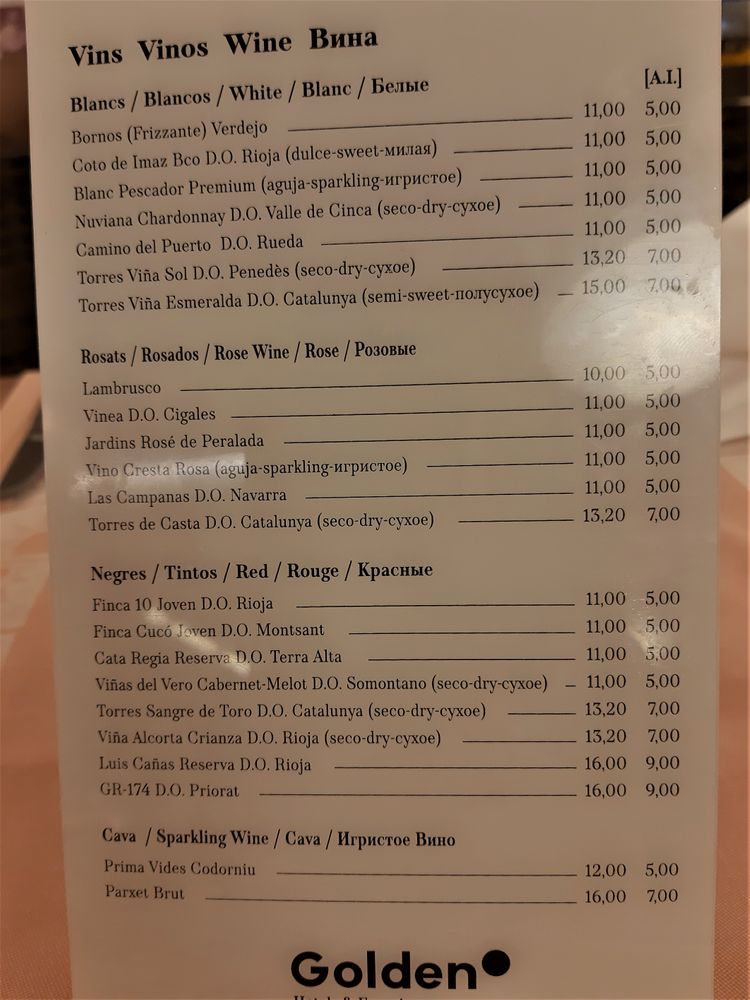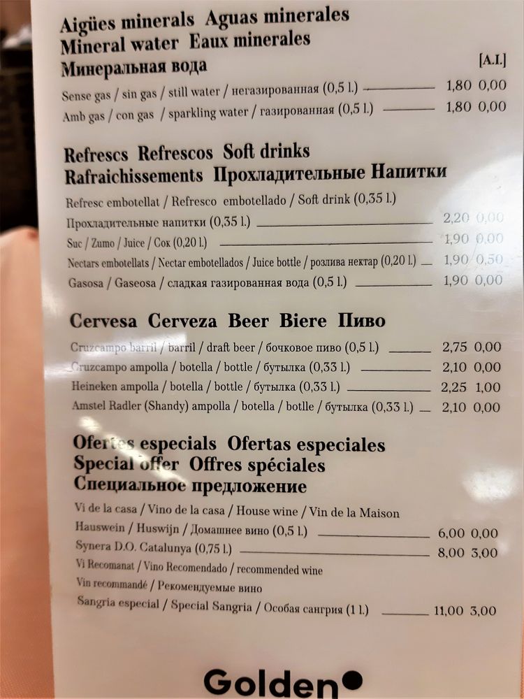 Напитки на ужин платные. Ниже привожу прайс, вдруг кому пригодится.