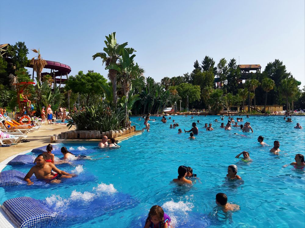 замечательные чистые бассейны, много точек питания и мороженого, масса лежаков и инструкторы или спасатели, или как называют тех, кто смотрит за порядком на каждом объекте инфраструктуры, оооооочень внимательные, собранные и серьезные, всегда начеку и не отстанут, пока не выполнишь их правила, хоть некоторые показались мне странными. Например, нельзя стоять в бассейне в солнечных очках. Не плавать, подчеркну, а именно стоять и следить за ребенком. Или, в некоторых бассейнах нельзя, чтобы дети были с плавательными кругами! Или, нельзя быть с телефоном в руках в бассейне (в том числе фотографировать что-то). Они душу вынимали, но добивались, чтоб люди не делали то, что запрещено. Сын прокатился на всех горках, дочь на всех, куда ей разрешили пойти, я с младшей плескалась во всех бассейнах. Уходили последними.