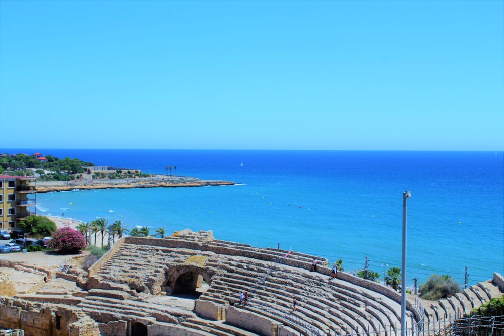 Одна из остановок была около того самого Таррагонского порта, видимого с нашего пляжа. Почему там была остановка? Потому что прямо рядом с портом расположен один из самых крупных и красивых городских пляжей! Я своими глазами наблюдала изумительно чистую воду и множество загорающих и купающихся людей. И это прямо рядом с портом! Не знаю, что у них за очистные сооружения, фильтры, или просто в портах ничего нельзя кораблям делать, кроме как просто стоять..... но подобную ситуацию я наблюдала позднее и в Барселоне - порт рядом с пляжем, и пляж чистейший!
