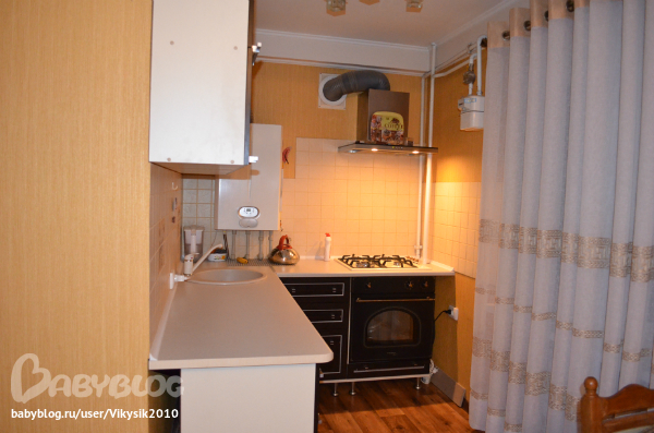 - с вытяжкой правда надо что-то придумать, сюдя бы какую-то под старину под стать плите, и гофру припрятать