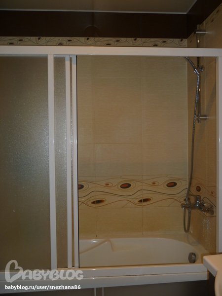 У нас матовое на всю ширину ванной. Состоит из трех частей, все сдвигаются в сторону дальней стены что немного грнаничивает доступ к крану, но не сильно, дотянуться можно. Еще не опробовали полноценно, т.к. ремонт еще не доделали и там не живем. Фото, если надо, смогу скинуть только во вторник.