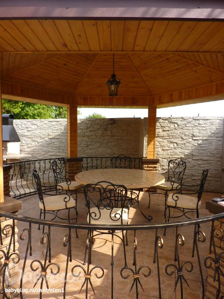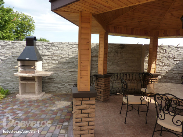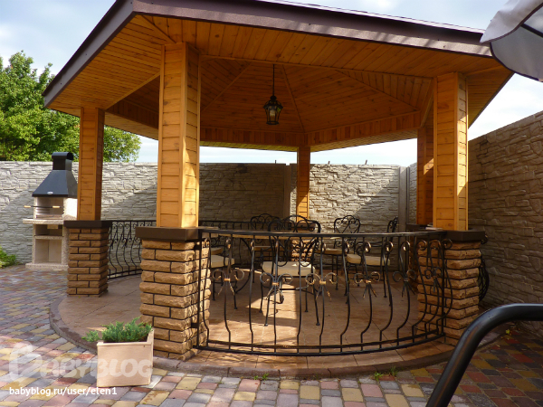 Классная получилась беседка, просто супер. Мы тоже все строим строим и в этом году видимо не достроим))))). Нл у нас печь будет внутри под крышей.