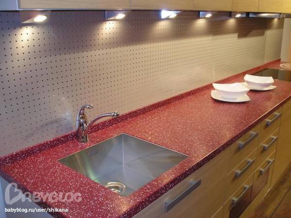 Я заказывала вместе с кухней.... цвет столешницы - шоколад..... царапается.... я ожидала большего от этого "чудесного" материала.....Внешне, конечно, очень красиво.....не зря все ти фирмы предлагают услугу по полировке этих столешниц в далнейшем(