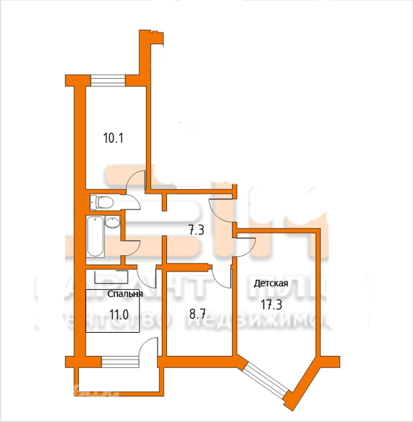 Я бы 11 кв.м отдала под детскую. Самая уютная комната и ребенку будет очень комфортно. И ещё мне нравится что там есть балкон. к тому же соседей сверху и снизу никто не отменял...а гостей все принимают обычно в зале, значит большая комната будет самой шумной..к тому же так близко от входной двери..малыш уже с полугода начнет осваивать полы...и вся грязь с улицы будет в шаговой доступности....но дело ваше..
