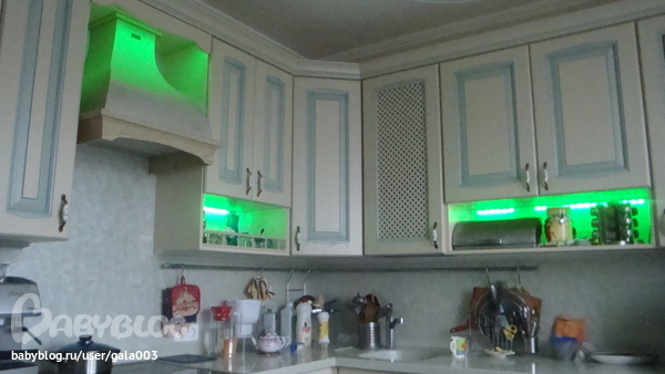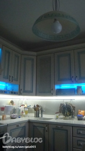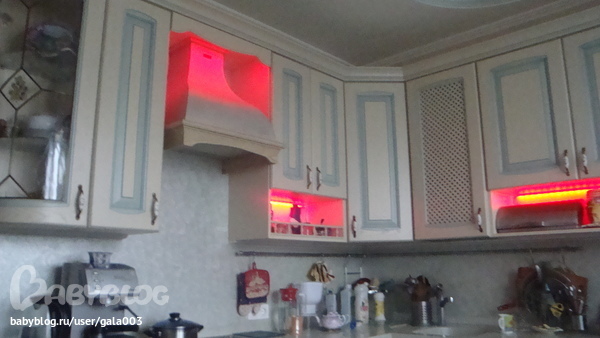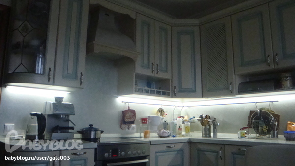 Электрика, освещение.Муж сделал еще одну подсветку на кухне. На кухне беспорядок, но за то фотки живые!