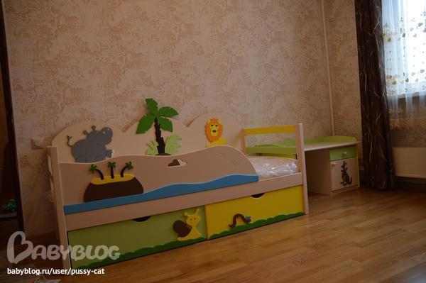 столик есть и стульчик, коврик тоже думаю добавить, у нас просто в другой стороне стоит его маленькая кроватка и пока она там стоять и будет, я заказ же делала когда уже узнала что Б, а так планировалось что будет еще стенка с кольцами, и домик но просто из-за того что нужно место на будущее мы не стали брать