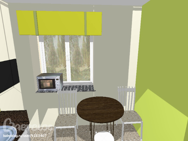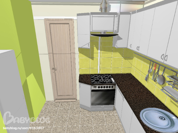 Сразу скажу. От двери по стене на расстоянии 1,5 метра от потолка идёт газовая труба. Которую деть невозможно никуда. По строительным нормам её даже нельзя прикрыть. Переварить технически невозможно. Первый этаж, труба стояка. Именно по этому плита будет располагаться именно там, т.к. переносить её на другую стену и тянуть эту жуткую газовую трубу ещё по одной стене не вижу смысла. Раковину перенесла. Её можно поменять местами с посудомойкой, которая будет располагаться в тумбе слева. Но тогда не очень удобно будет пользоваться предметами быт.техникой, которые будут располагаться в углу. Продлевать столешницу до окна не будем. Т.к. в 70 см лишнего свободного пространства заинтересованы очень, а в ещё одном ящике нет. Так дышать будет полегче, да и визуально посвободнее. Это будет единственным местом для приёма гостей (не для застолий), в квартире планируется только спальня и детская. Ну и по поводу старомодности внешнего вида...чё тут скажешь, да старомодно, зато дешево)))