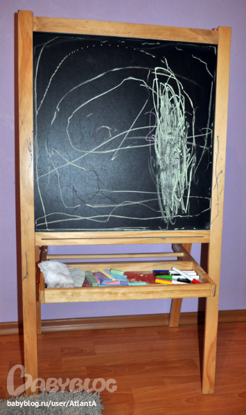 это любимый мольберт)) бабушка с дедушкой подарили его на Костино двухлетие)) до сих пор им пользуемся!! и мелки, и фломастеры из икеи)))