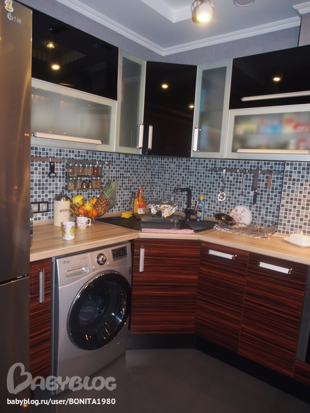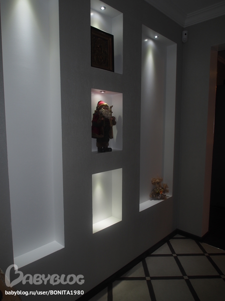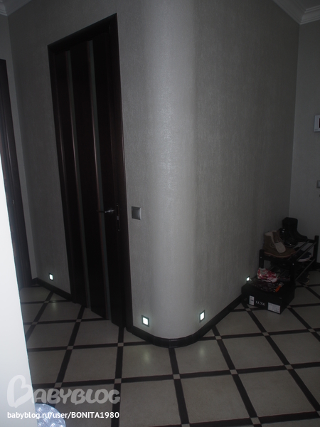 У нас тоже тесновато, поэтому столько подсветки, покупали в нашем доме, плитку