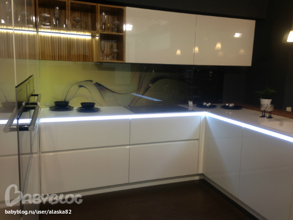 И тут, зайдя в один из салонов, не смогла глаз оторвать от кухни в шпоне (именно в том цвете, в котором она там стояла), хотя месяцем раньше также обомлела, когда увидела кухню в белом глянце именно эту, что на фото, только в другой композиции (в другом салоне)