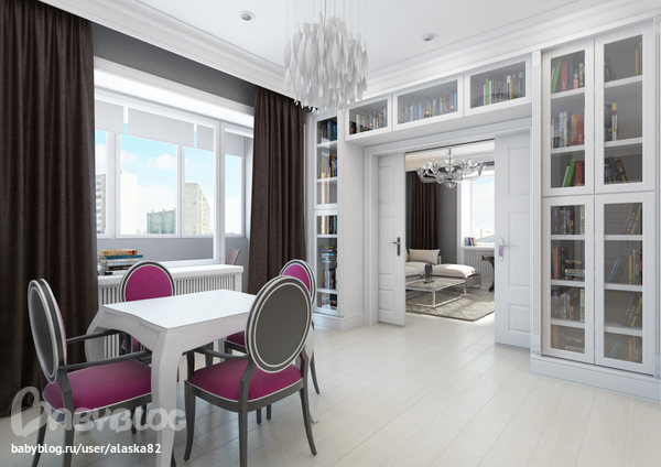 Чтобы более была понятна концепция квартиры, выложу еще визу холла, который рядом с кухней расположен.