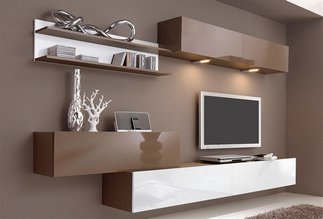 Интерьерное решение гостинойДевочки, как вам такая стенка? Мне кажется классной, главное нет стёкол, все полочки закрыты, то есть будит меньше всяких вазочек, соответственно меньше мелочей, стенка подвешивается - не стоит на полу. Телевизор можно подвешать, цвет красивый, глянцевая, все дверьки открываются. Хочу купить