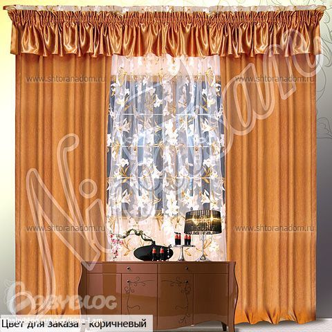 Есть еще вот такой вариант штор... Но эта тюлевая тряпочка посередине меня не вдохновляет...