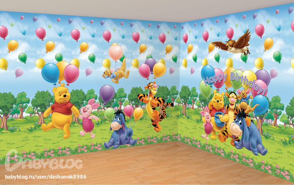 Если найдете спокойные фотообои во всю стену - будет здорово. У нас детская очень спокойная: нежно голубые и зеленый стены, белая мебель (фоток правда нет). Я очень хотела фотообои, но найти в размер не смогла, взяли чуть меньше стены, получился небольшой отступ со всех сторон. Обои с Винни Пухом,но они очень спокойные, не яркие. Были бы во всю стену, было бы классно, но в итоге смотрятся фигово. Как будто дырку какую-то ими залепили. Поэтому мое мнение или во всю стену, а если в размер нет,то лучше без них вовсе. Что касается минусов, то многие, кто клеил самостоятельно, говорят,что они рвутся (это обои Komar), но у нас клеили рабочие, поэтому к качеству нареканий нет, все ровно,аккуратно.