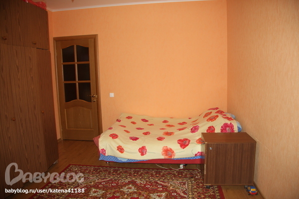 Интерьерное решение спальниДевочки, здравствуйте! Очень нужены ваши советы. У меня однокомнатная квартира и комната выполняет роль гостиной и спальни. Это вид от двери: